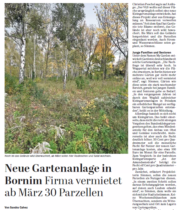 …Am Unterbacher See entstehen auf einem rund 30.000 Quadratmeter großen Grundstück am Südstrand nach langer Genehmigungsphase 80 Parzellen. Festbauten dürfen dort nicht errichtet werden, die Flächen sind vor allem für den Anbau von Gemüse und Obst, Blumen und Kräutern gedacht…